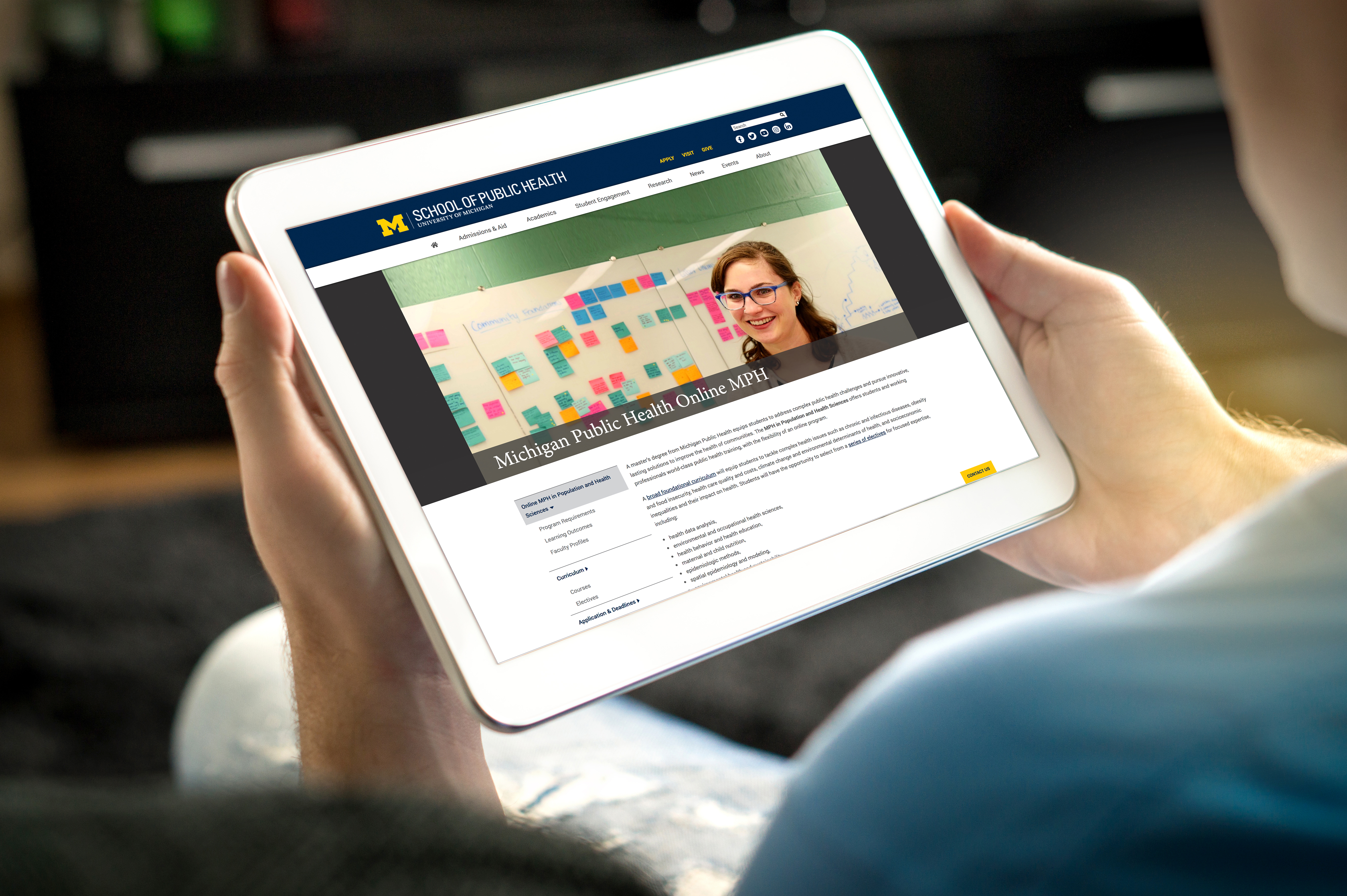 The online Master of Public Health in Population and Health Sciences degree from the University of Michigan School of Public Health provides cutting-edge multidisciplinary education for those seeking to create a healthier world through research, education, and practice. To prepare to become leaders in the field, MPH students build expertise in core public health concepts and customize their learning with skill development in areas like precision nutrition, health communications, data analysis, environmental epidemiology, and more.